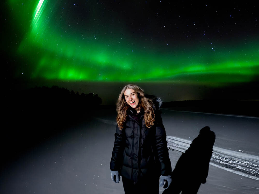 Drive a snowmobile through the dark, snowy forest on this exciting evening tour. We will travel far away from the city lights, where the night sky is darkest. This gives you the best chance to see the magical Northern Lights while enjoying a fun ride through nature.