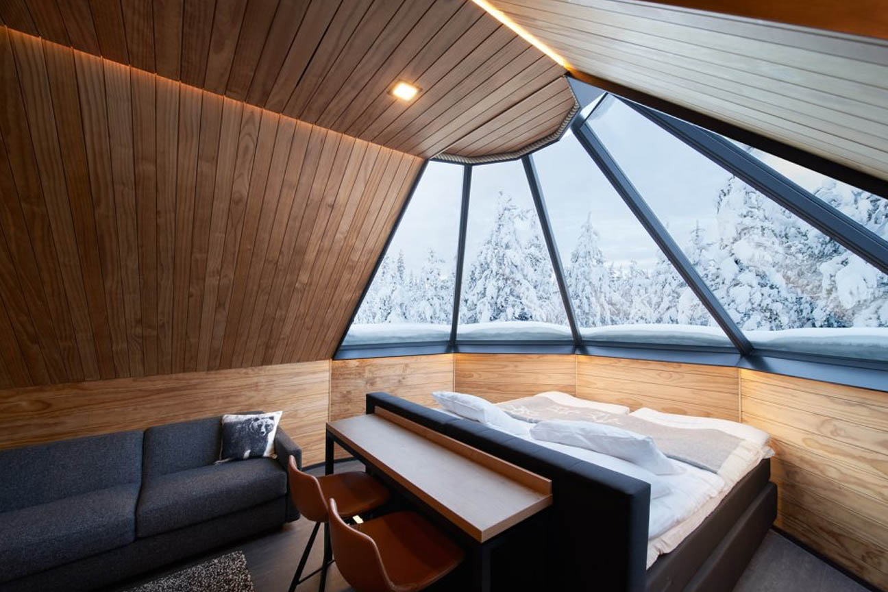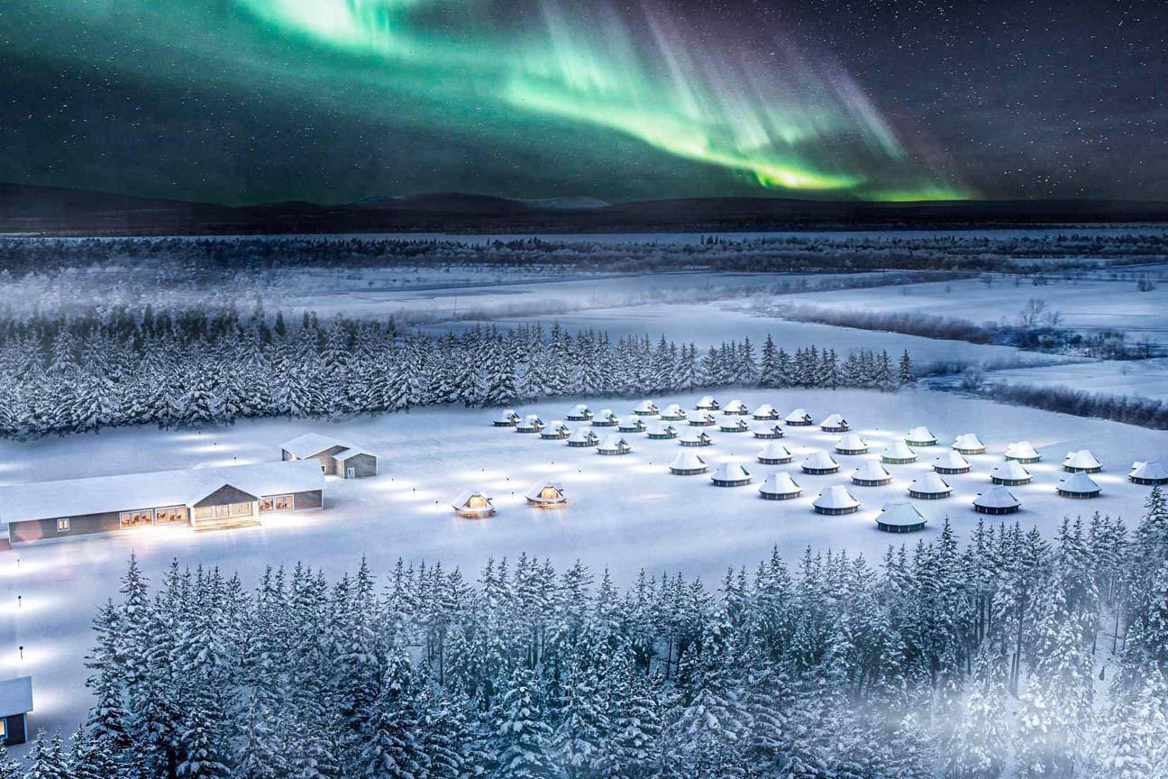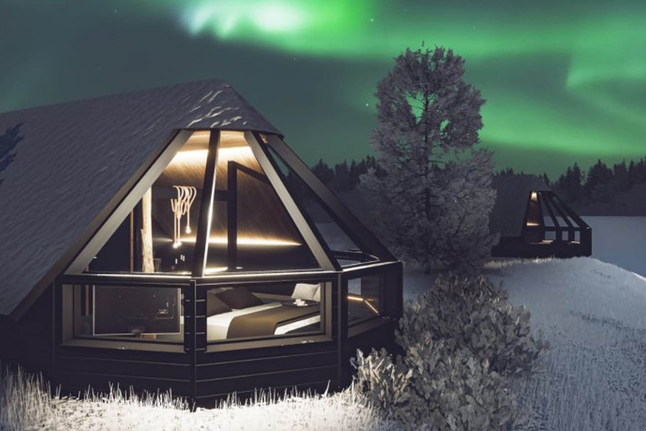 Glass Igloo Stay: Check in to the Northern Light Village Levi. You will stay in Aurora Cabins (glass igloos), giving you the chance to see the Northern Lights from your warm bed.